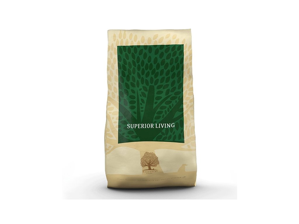 Essential Superior Living, to znamená jedinečnou bezobilnou kombinaci Ross a Cobb kuřecího masa a slavné Gressinghamské kachny s čerstvými rybami – svěžím duhovým pstruhem a skotským lososem. Toto krmivo je určeno pro všechna plemena, a to tak, aby bylo pro psa vyváženou stravou pro běžné každodenní aktivity. Pro větší rozmanitost živin a chutí se dá jídelníček skvěle doplnit balením Nautical Living nebo Estate living.